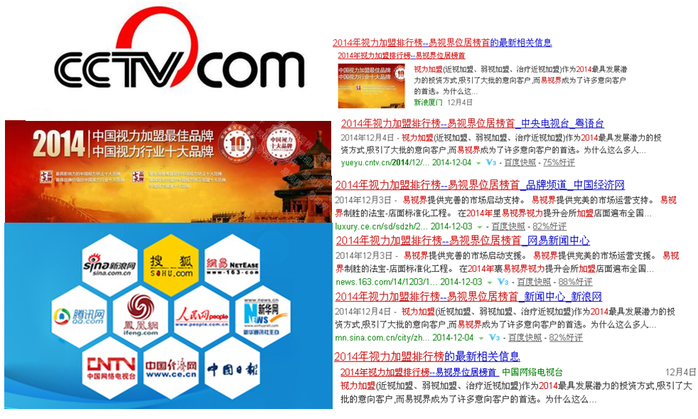 易視界被多家知名媒體評(píng)為2014年視力加盟排行榜榜首