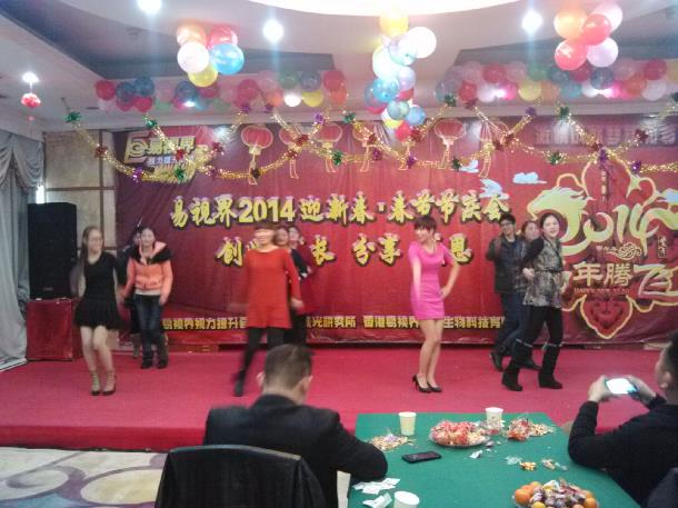 最后,讓我們飲慶功美酒,祝愿各位新年快樂,身體健康,家庭幸福!共同祝愿:易視界2014年更上一層樓!