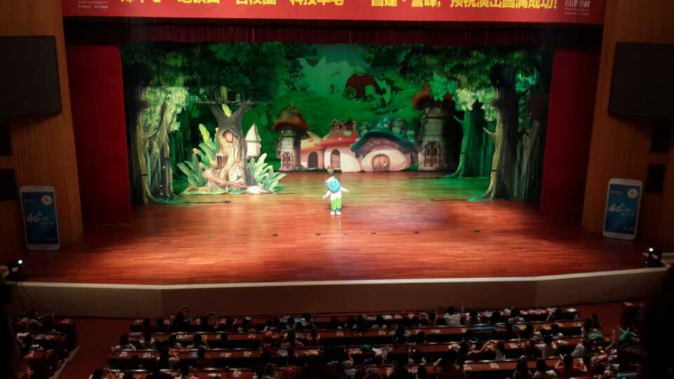 話劇開播,演員們生動(dòng)的精靈服裝,充滿誘惑力的劇情和搞笑畫面的吸引了孩子們的注意。